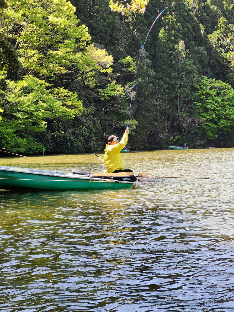 マコヤンと私に挟まれるも、冷静に竿を絞ってましたね。笑